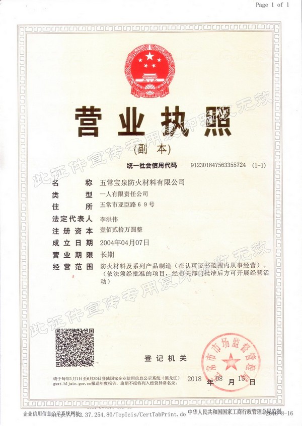 企業(yè)簡介 五常寶泉防火材料有限公司(黑龍江省寶泉消防設(shè)備有限公司)是主要制造、經(jīng)營、銷售防火阻燃材料系列產(chǎn)品。其中以自粘性阻燃包帶(ZFBD)、阻火包(PFB)、有機防火堵料(SFD)、室內(nèi)超薄型鋼結(jié)構(gòu)防火涂料(NCB(BCF)-1)為主要產(chǎn)品。寶泉牌防火材料系列產(chǎn)品是普通防火材料的更新?lián)Q代產(chǎn)品,防火性能優(yōu)異,具有普通防火材料沒有的諸多優(yōu)點:施工方便、經(jīng)久耐用、耐火極限高、熱傳導(dǎo)率低、耐腐蝕、抗老化、無毒無害、環(huán)保、可以連續(xù)施工等特點。產(chǎn)品廣泛應(yīng)用于電力企業(yè)(各型電廠、輸變電公司、電建公司、電力公司)、石油化工企業(yè)、冶金業(yè)、通訊業(yè)、地鐵、隧道、...